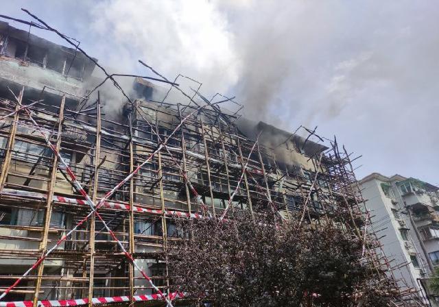 8月25日9时47分,徐汇区丰谷路260弄一老式居民楼外立面脚手架突发火灾。