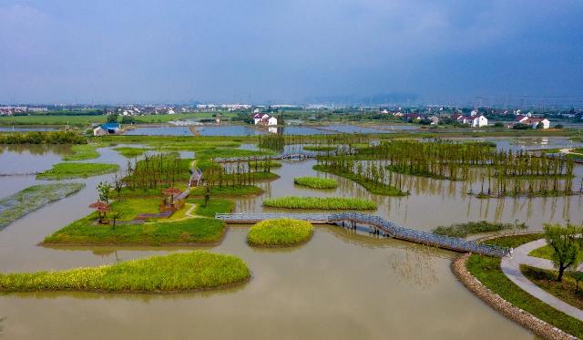 日前,漕泾镇水库村湿地公园一期正式开放,“水+园”、“水+岛”、“水+田”的园区建设初具规模。湿地公园一期中,水域面积约110亩,栈道总长约1公里。