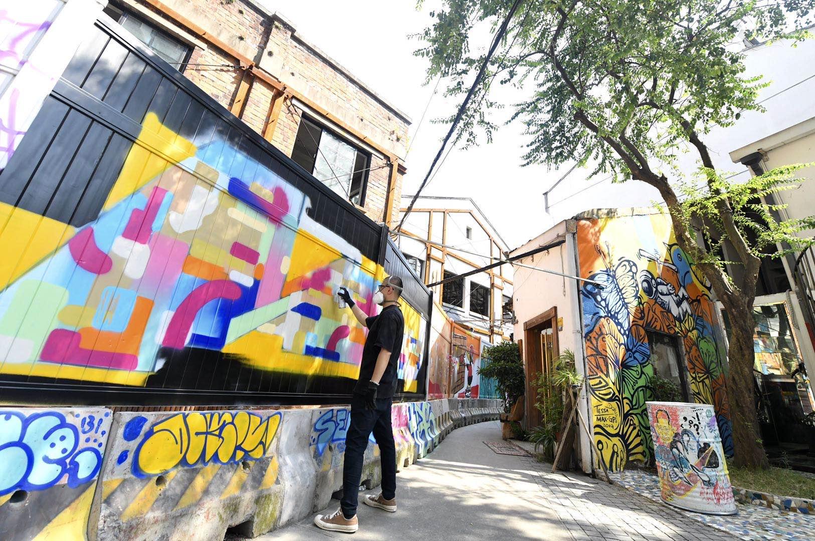 把涂鸦墙搬到艺术园区里面,这也是堵不如疏的方法。此次“启涂KEEP SHAKING”活动的总策划、厂牌BKSTORE艺术总监猛龙酱LEWIS LE认为,莫干山路上的涂鸦墙是上海乃至全国最早的涂鸦天地,是城市的一道潮流文艺景观,它的消失难免引起人们的惋惜。莫干山路上的涂鸦墙和画廊群,共同构筑起人们心目中的“M50”,作为城市更新的一部分,这排涂鸦墙理应持续下去。所以我们策划了此次活动,吸引有才华的青年艺术家继续发挥天赋,希望涂鸦可以在M50园区内继续成长,续写更精彩的城市文化风景。