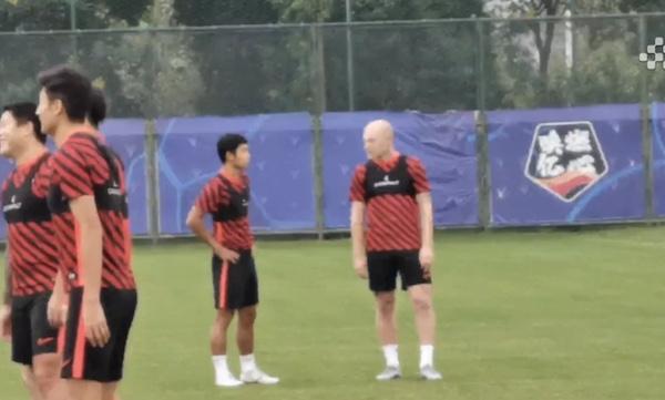根据中超的规定,赛前训练必须向媒体开放15分钟。已经跟队训练了几天的新援穆伊算是公开亮相上港队的训练场。