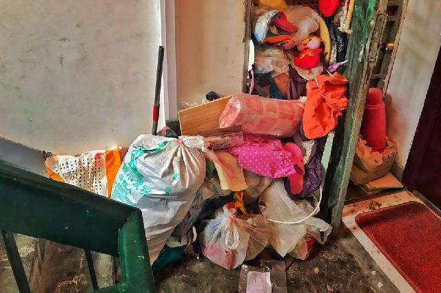 住在隔壁爷叔说。邻居们每天都在担心,一旦着火,堆放在这户人家中的杂物,可能会将整栋楼点燃。