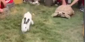 据梨视频报道,9月24日,河南郑州一幼儿园组织亲子活动,主办方安排了“龟兔赛跑”的环节,没想到参加比赛的兔子起跑领先后却突然停了下来,止步不前,乌龟则后来居上赢得了比赛。