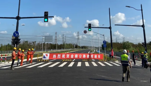 经过三年的奋战,金山市民期盼已久的金廊公路目前已全线贯通,正式通车。通车后,这条从上海市区、青浦、松江直达金山新城的通道,将贯穿金山中部南北,成为金山、松江两区的最新干道,大大方便市民出行。