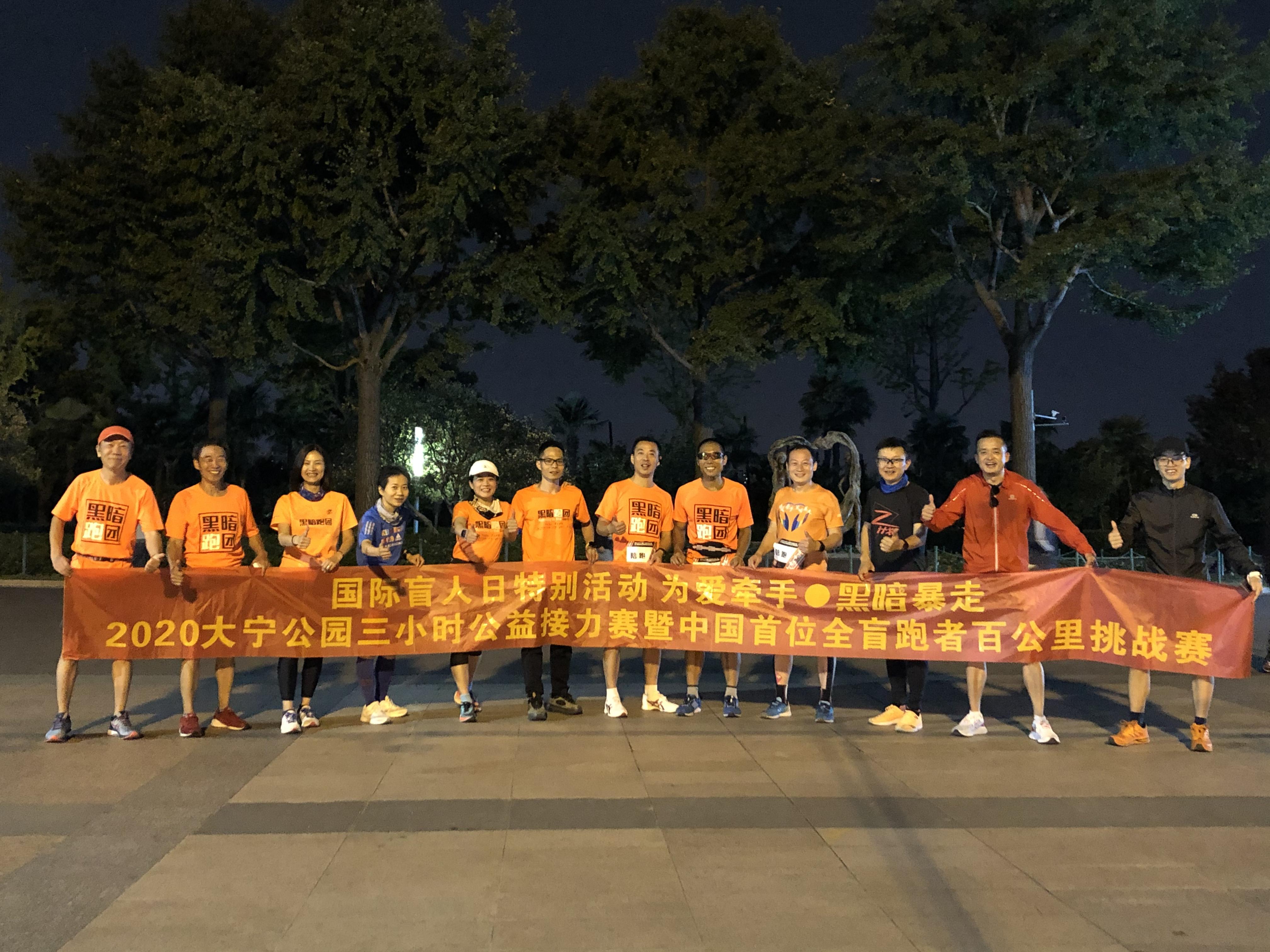 严伟是中国首位完成波士顿马拉松的全盲跑者,也是跑团公认的大神。这次活动,黑暗跑团出动了包括团长在内的15名陪跑员,轮番上阵助力。
