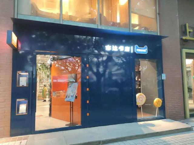 位于国权路525号的志达书店,深蓝色、充满科技感的外观令它成为国权路上的一抹风景。走进店内,一条窄窄的图书走廊,配上白绿相间、自然垂吊的装饰植物,将书店大厅和外界相连。