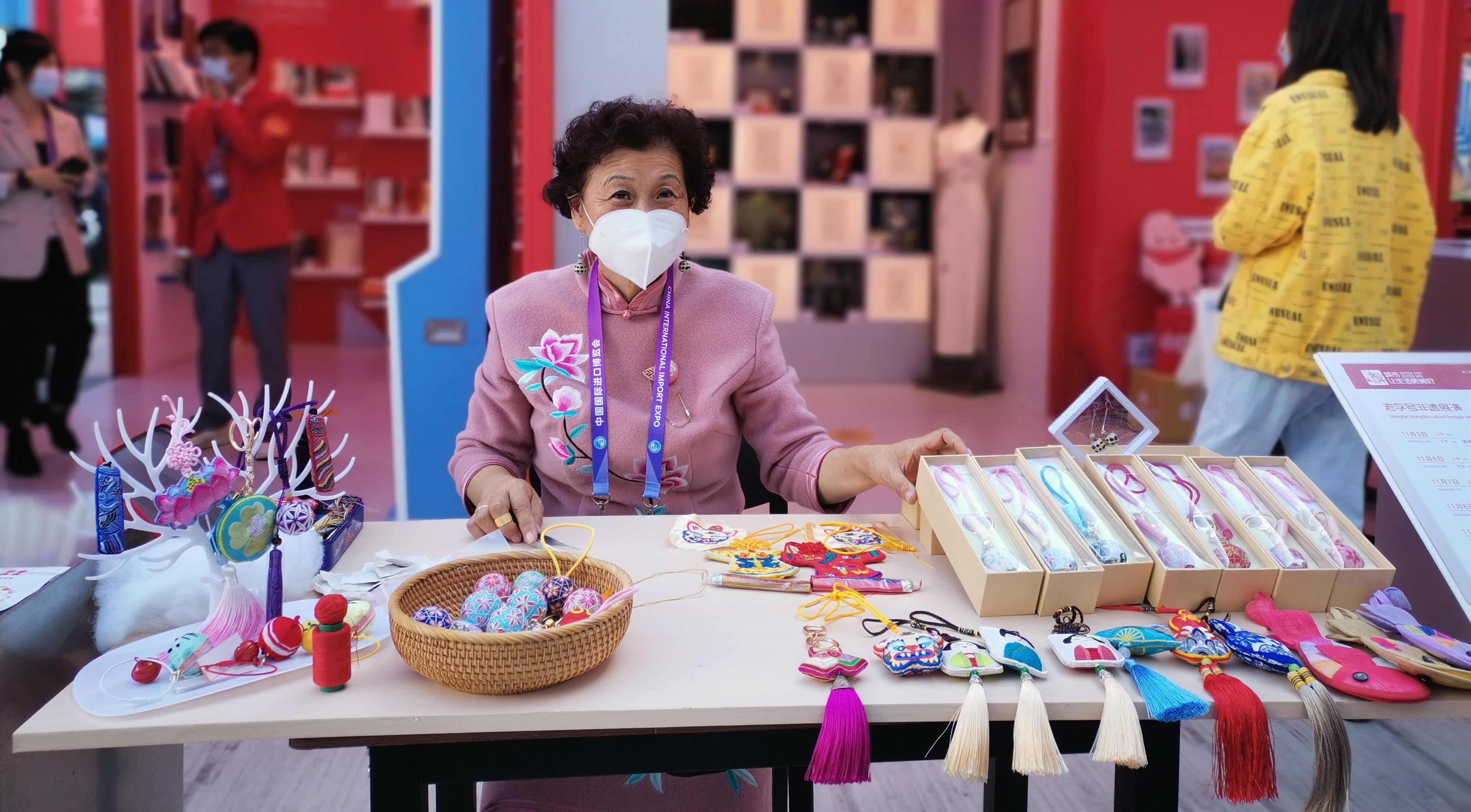 今天一早,“香囊制作技艺”的非遗传承人,被称作上海“香囊女王”的陈杏芝又来到进博会,精神矍铄地在飞针走线间,穿起了海派香囊与进博会的“缘”。