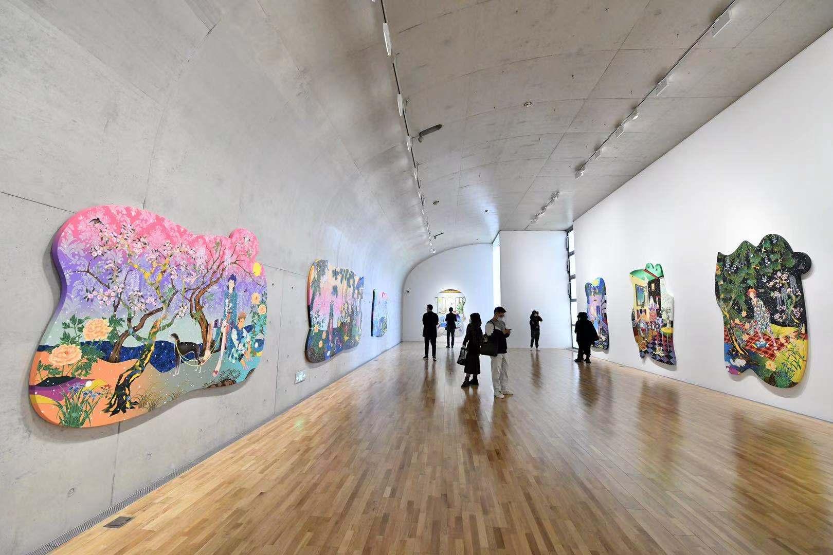 既有点卡通,又带着波普感,既有东方传统元素,又有拼贴和表现主义的手法,日本艺术家松山智一的个展“松山智一:自然可解”于2020年11月12日至2021年1月24日在龙美术馆(西岸馆)举办,这是松山智一在中国内地的首场个展。视觉上的极度舒适,吸引了不少观众前来打卡,但是在绚丽欢快的表象背后,却隐隐地让人有种不太真实的感觉。