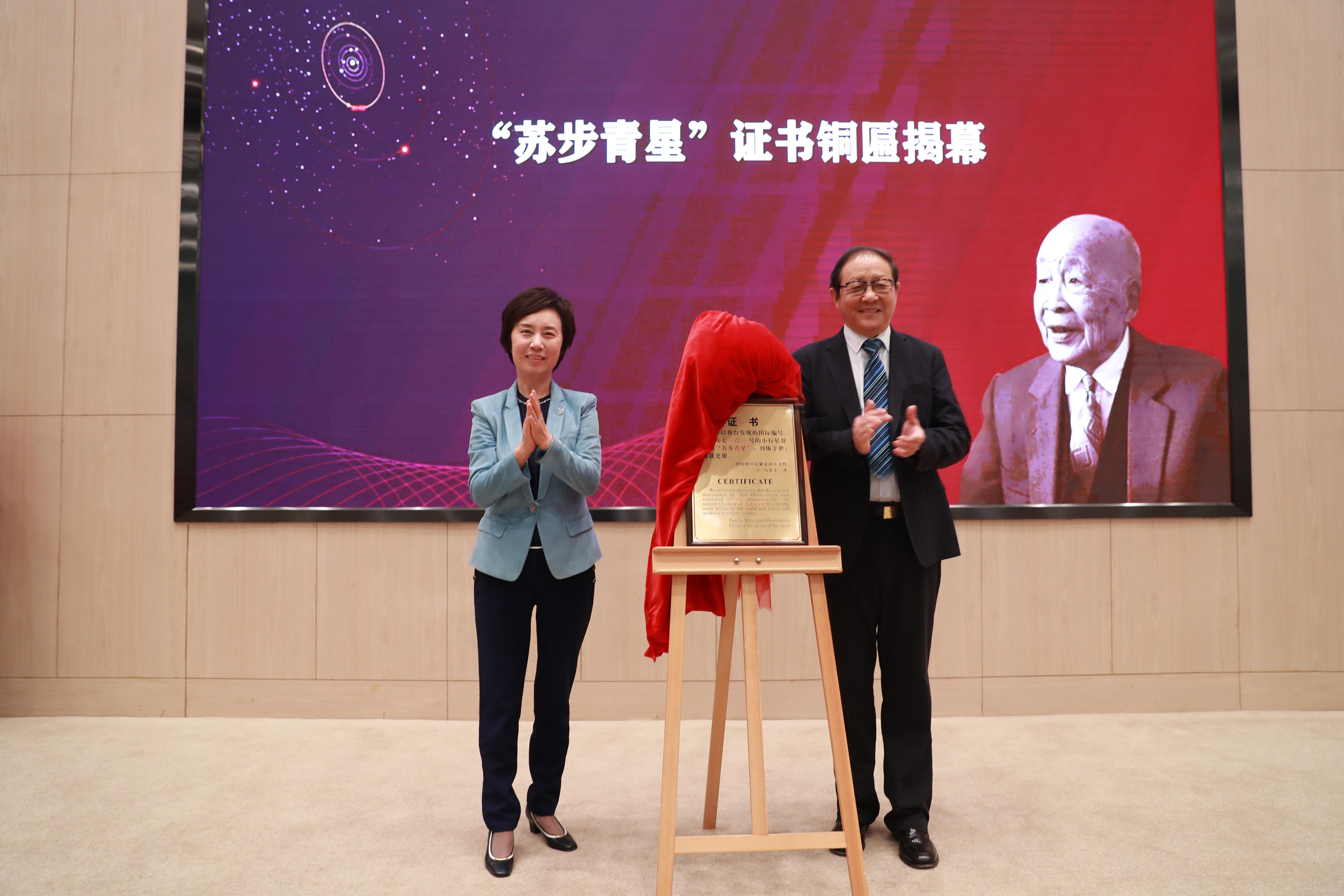以我国著名数学家、中国科学院院士、复旦大学校长、教授苏步青命名的小行星“苏步青星”命名仪式于今天(11月13日)下午在复旦大学邯郸校区举行,会上宣读了“苏步青星”国际命名公报,介绍了“苏步青星”发现和轨道运行情况,苏步青先生家属代表获颁国际命名公报、命名证书、星照片和轨道光盘,“苏步青星”铜匾揭幕。