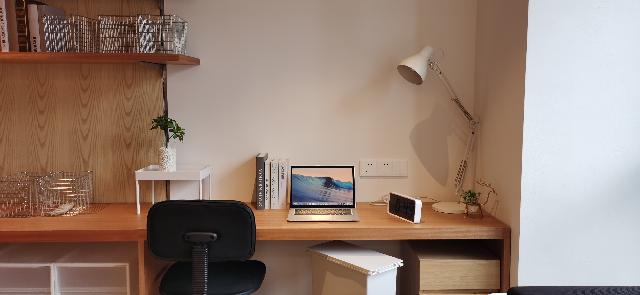 书桌靠近窗边,办公或学习累了,抬头望望窗外的风景,想想就很放松。