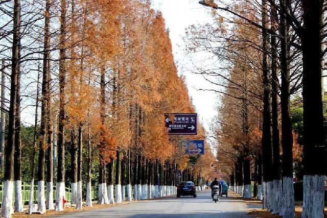 而一年之中最为惊艳的时节当属初冬了。路的两旁,水杉挺拔耸立,树叶色彩斑驳,阳光洒下,树影婆娑斑驳。闭上双眼,风从身旁掠过,树木幽香扑鼻,引人入胜。漫步其间,仿若步入水杉隧道,金黄落叶铺满蜿蜒小道,美不胜收。