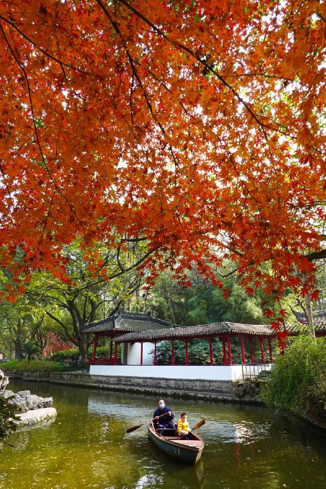当然,古钟园的美,不仅美在有亭阁楼台,环绕园区的一条小河也为“颜值”加分。每到晴天,小河里穿行而过的小船,悠哉悠哉地左右摇晃着驶过你的面前,冬日的午后,亲朋好友齐聚于此,享受宁静时光,真是惬意。