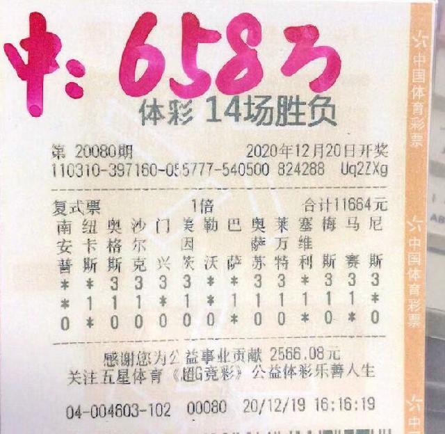 12月21日开奖的第20081期中奖彩票,投入金额13122元,8场比赛选择了“3、1、0”全包,这次包括了热刺输给莱斯特城、拉齐奥击败那不勒斯那两场冷门。该单命中1注一等奖和16注二等奖,奖金总计345922元。