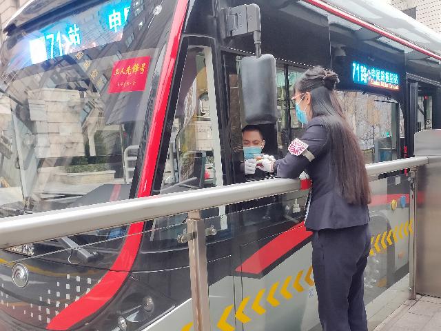 “我们车队工会已经提前采购暖宝宝、姜茶包等御寒物资发放至各个站点,随时提供给有需要的职工。车辆清洁专用车上配置的清洁水桶,会及时添加热水,使清洁水桶内保持一定的水温,便于司乘人员执行‘一圈一擦拭’后清洁抹布。”71路车队负责人表示。