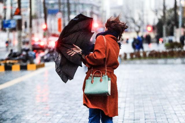 12月29日,午后寒潮来袭,气温瞬间跳水,大风呼啸,冷雨连连,上海中心气象台发布寒潮黄色预警、大风黄色预警和首个低温黄色预警。