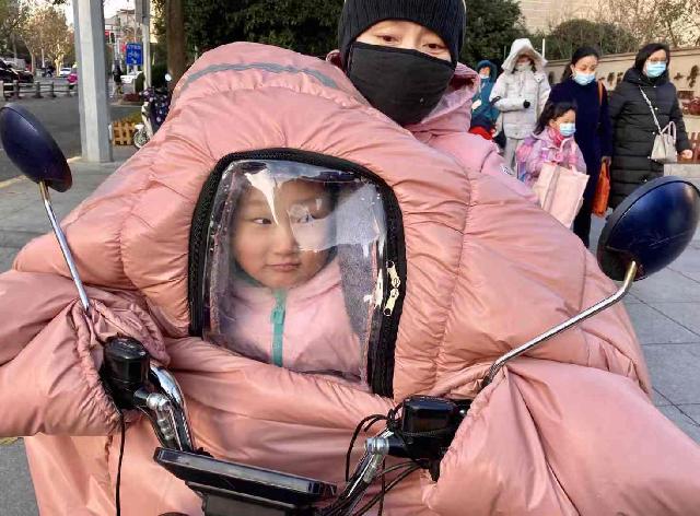 在一师附校门口,记者注意到孩子们基本上穿着厚厚的羽绒服,有的还戴着防寒帽,也有同学还戴着专门的护耳套。看来,对这次寒潮的应对,大家准备还是比较充分的。