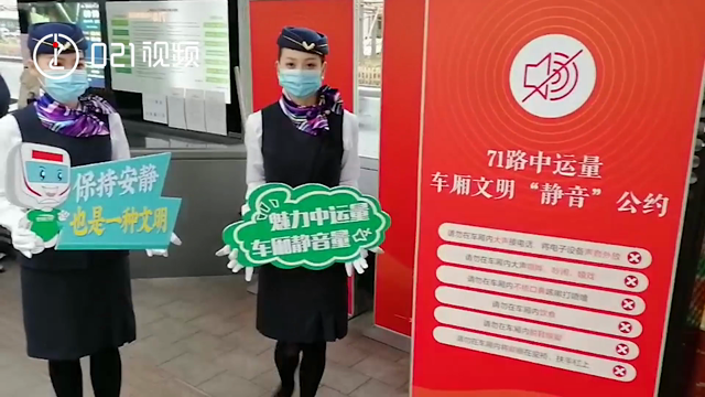1月5日起,上海中运量71路正式发出车厢文明静音公约,倡导乘客文明乘车。公约共6条,包括“请勿在车厢内外放电子设备”、“请勿在车厢内不捂口鼻咳嗽打喷嚏”等。司乘人员也经过培训,将轻声引导提醒乘客。