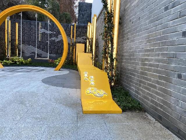 通过艺术构架、圆梦秋千、休闲长凳、铺装、灯光等元素,划分出休息区、艺术展示区、儿童游戏区等复合功能。另外在材料选择上传承了文化记忆的瓦片、青砖、粉墙和颜色靓丽的现代装置,在小小的“口袋公园”碰撞出真如特色的花火。