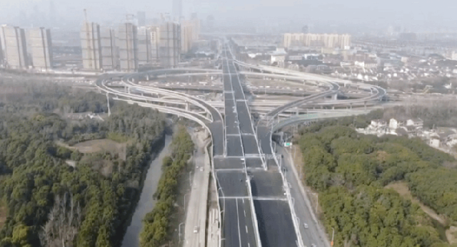 白色的标识线、绿色的指示牌、新安装的声屏障……从济阳路高架一路往南,一段崭新的高架延伸至浦江镇的腹地。