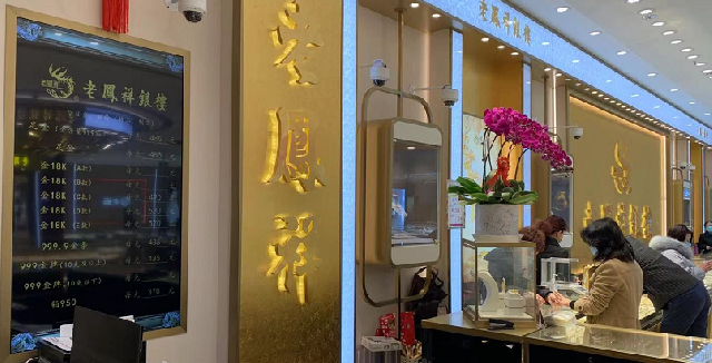 多个金饰品牌的店员告诉记者,今年春节销售情况很是不错。例如英皇珠宝柜台7天销售额就突破了100万元,到了今天,大部分热销的牛年生肖类饰品基本都已售罄,“比如这款貔貅坠子,因为采用了特殊的纳米技术,可以通过中间的小珠子看到里面‘恭喜发财’四个字,比较特别所以人气也很高。春节前我们备了不下10个,现在就剩最后一个了”,柜台负责人告诉记者,由于初一到初三柜台有每克减100元的活动,大受顾客欢迎的同时也带动了很多镶嵌类珠宝的销售。