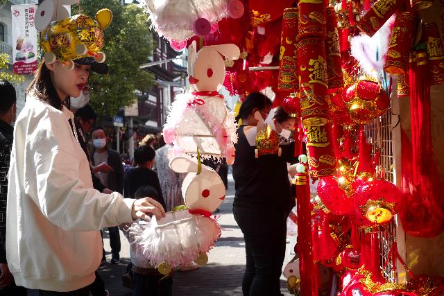 春节刚过,元宵节又临近,在豫园周边的小商品市场,各种各样造型的元宵花灯琳琅满目。其中,最受市民喜爱的还是纯手工制作的传统兔子灯。