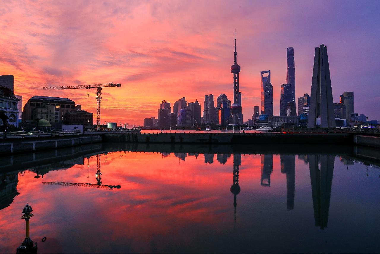 惊艳清晨!申城朝霞如火映日红 | 晨镜头 - 周到