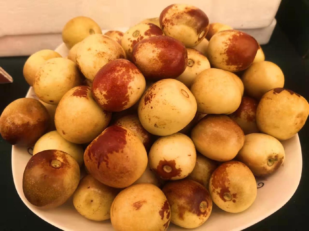 大荔冬枣皮薄肉脆、入口即化,红黄雨润、汁多香甜,富含多种人体必需的氨基酸,维C含量是苹果的70倍、梨的140倍。目前出口加拿大、迪拜等8个国家和地区。”