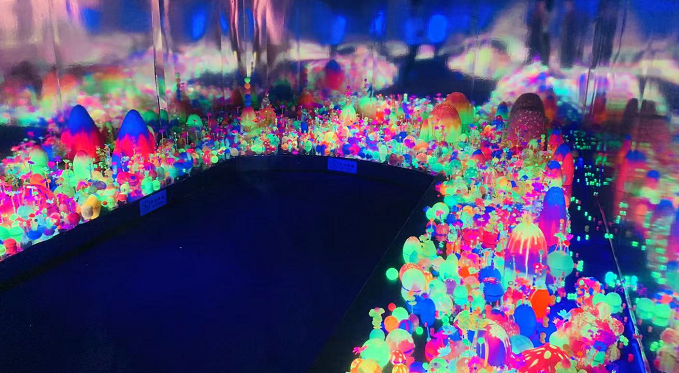 最后一个空间是荧光主题的,在偏暗的背景下,各种糖果造型可以发光哦~周到君觉得更适合拍近景,出片效果很不错。不过也有网友推荐大家穿浅色衣服,拍摄人像照的效果也很好!