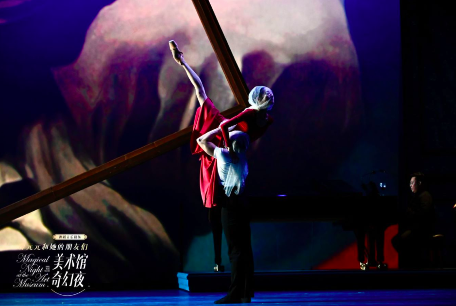 在这台演出中,汇集了芭蕾舞、现代舞、古典舞的舞者以及钢琴、小提琴、古典吉他、巴扬、琵琶等音乐家,音乐、绘画、戏剧等多种艺术形式的糅合为观众打造了“人画合一”的浸入式体验,每位舞者像是“画作精灵”用舞蹈阐释着世界名画的精髓。