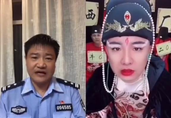 画面中,左边身穿警服的是秦皇岛的反诈民警老陈,在成功与主播连线后首先问出了那句招牌式的开场白:“您好,我是反诈主播,请问您是什么主播?”