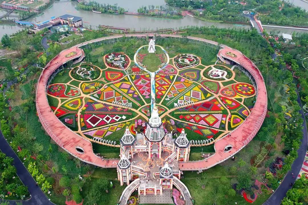 此次花展,奇迹花园打造了新的网红打卡点。比如,爱情园里竖立起一个高三层楼的巨型旋转互动蛋糕花雕,每当有人靠近,就会自动360度旋转,并播放音乐,将游客带入到欢庆的气氛中来。在不要钱的礼物店,游客完成打卡可抽取独属于自己的标签。在籽播花卉区,可以与月亮拍照,尽显女神气质。花展期间,网红上海“女小囡”幼恩将来到现场。