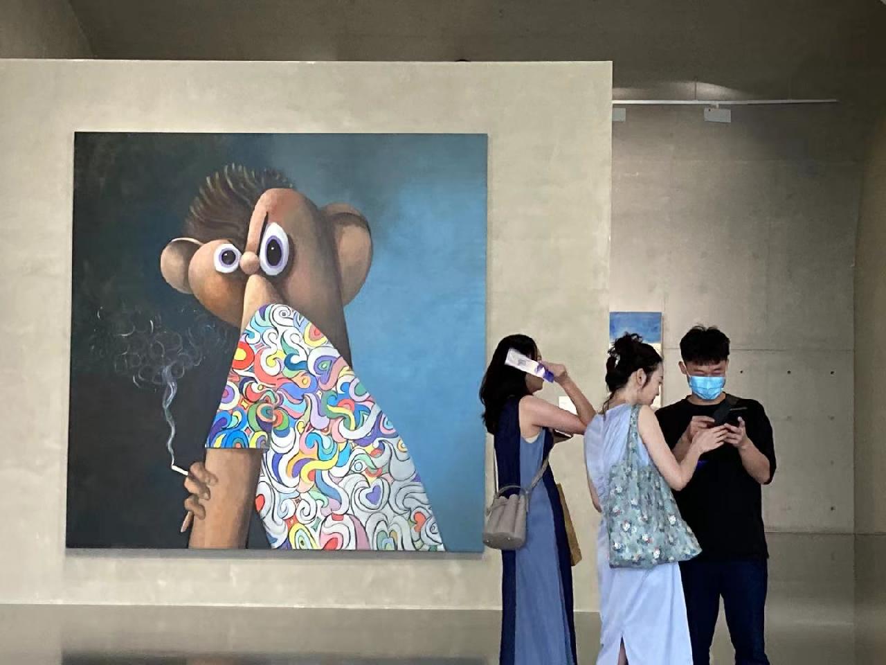康多的作品里有着对于艺术史、美术馆的重新表达。他用40多年来积累下来的30多幅肖像作品以一种旧日沙龙的方式进行展陈,强大的冲击力填满展墙,延伸人们对美术馆的思考。这些散发着神秘气息又荒诞不经的小丑,演绎着一出出悲喜交加的人生戏剧,难怪很多观众会在这面展墙前驻足良久。