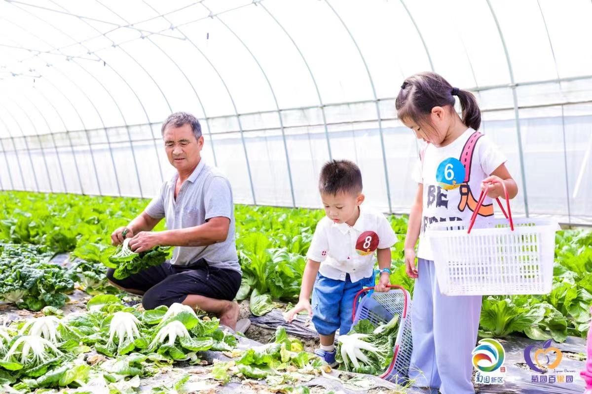 菊园百果园自建成以来,新区不断优化升级软硬件基础,积极利用乡村自然资源和人文资源,把自然生态文化与休闲观光文化、乡土文化与现代文化有机结合,创建都市生态农业旅游目的地,连续举办中国农民丰收节、樱桃文化节等主题活动,并以此为依托,充分整合园区资源,确立了“蔬果采摘、亲子游玩、主题赛事、农耕文化、国防教育”五位一体的核心内容。推动从景区游向全域游转变、从观光游向休闲度假游转变,不断强化新区特色休闲农业旅游目的地品牌影响力。
