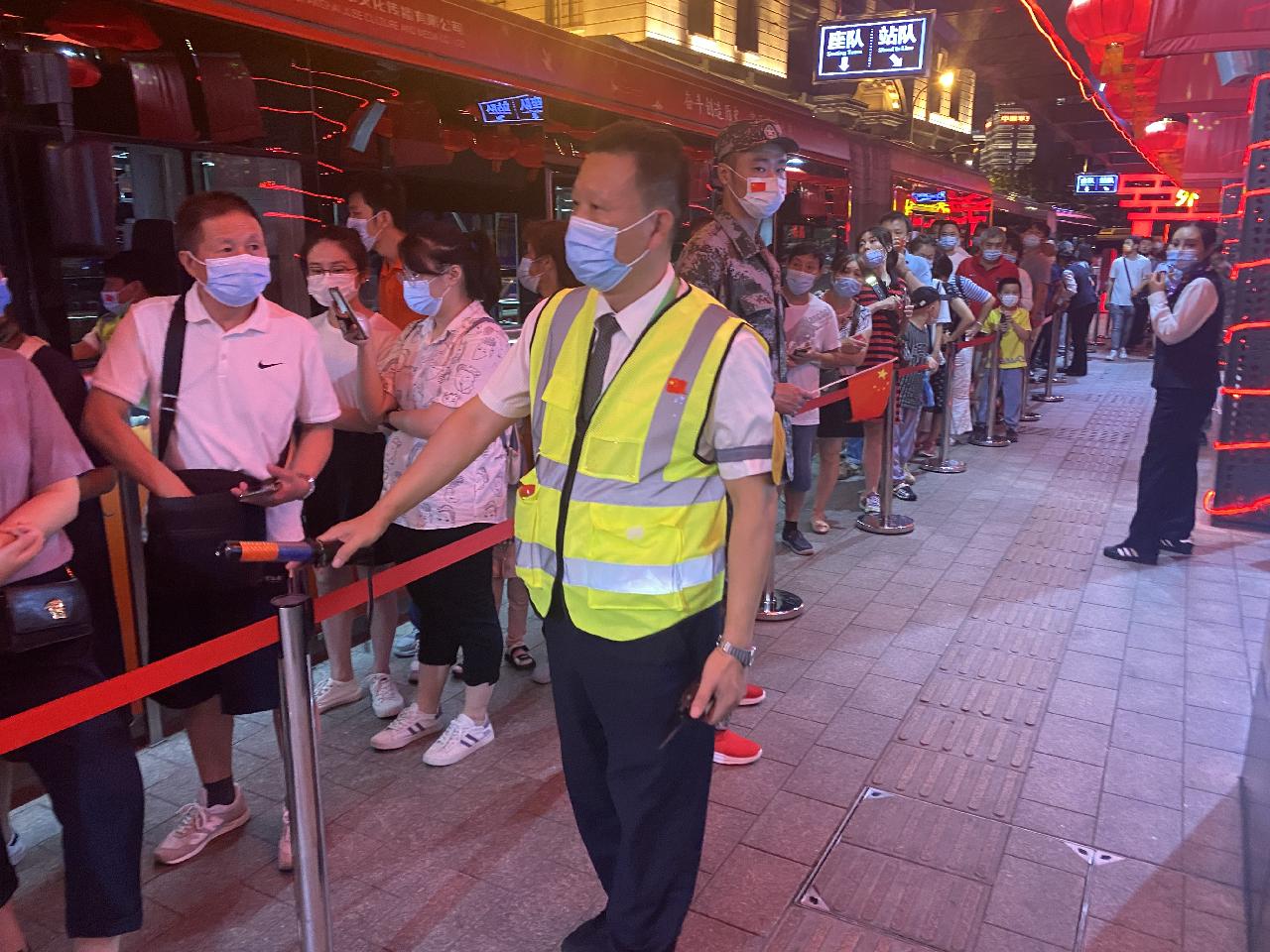 此外,根据外滩客流激增的情况,71路中运量车队专门安排了由导乘员、青年志愿者以及管理人员组成的队伍,在外滩终点站进行现场管控,同时严格实施常态化疫情防控。