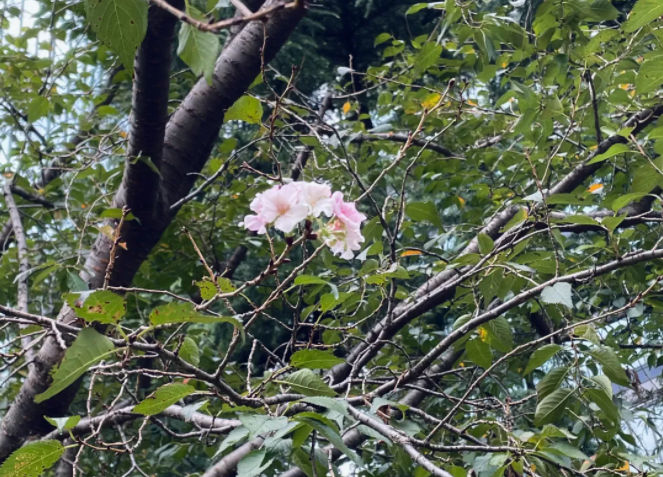 寒露时节已过,在这个本该金桂飘香的季节,静安多个公园的几棵本该春季开花的樱花和海棠却意外开花了。