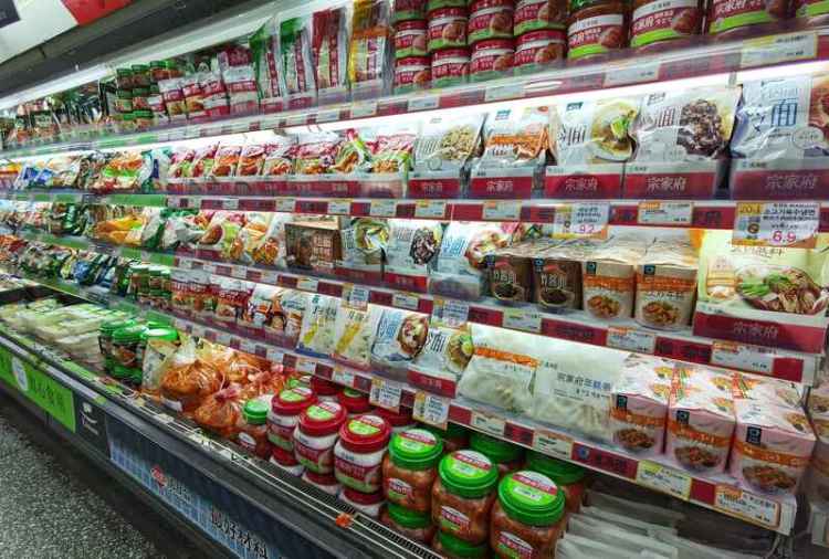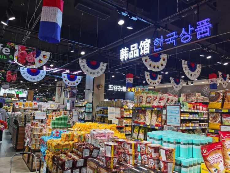 沿街店铺均带有韩国特色,就连平平无奇的连锁超市,开在虹井路上的分店也独树一帜,售卖各类韩国年糕、大酱等特色食品。