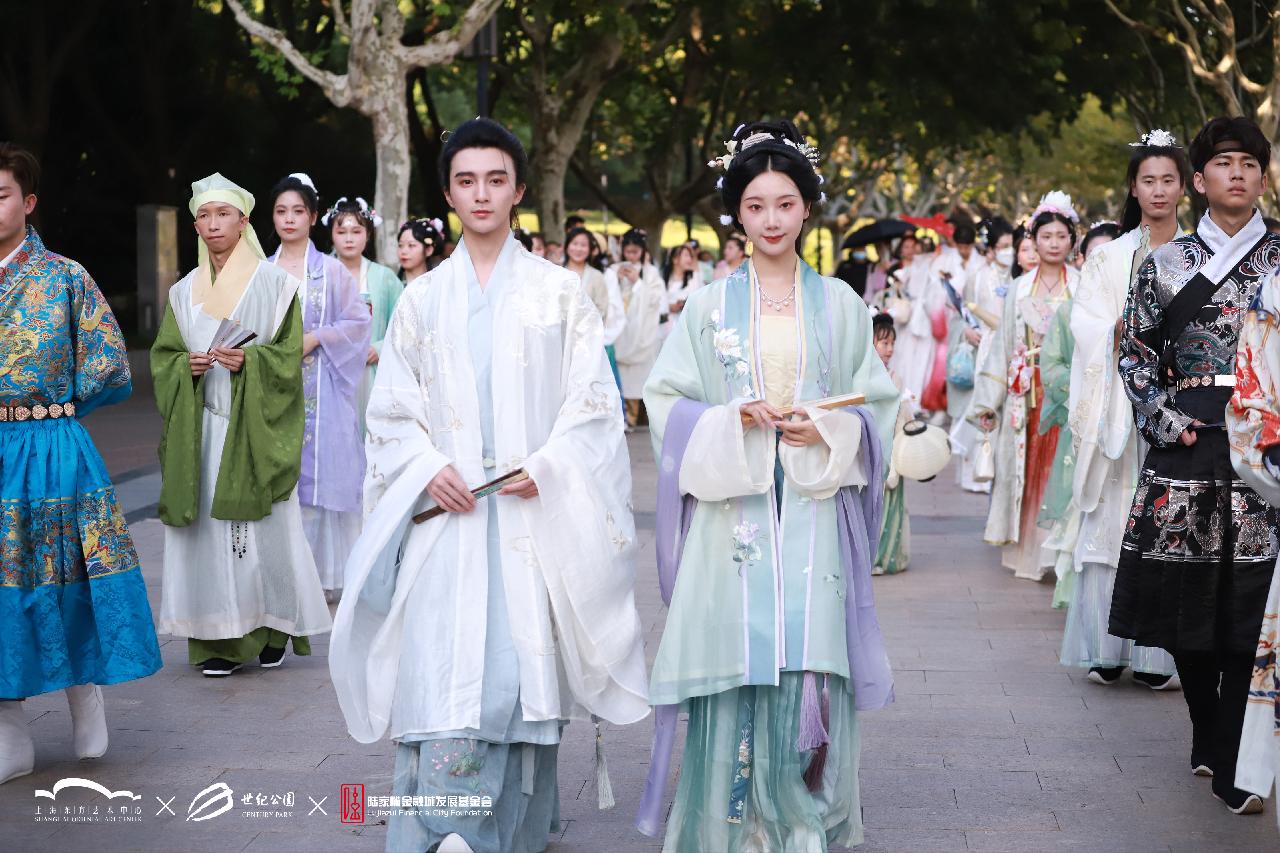 巡游现场,仿佛是一场梦境与烟火的碰撞,鹤川、清音、九井宴、庄翰等知名国风KOL引来数百位汉服爱好者共同相随,或打伞或提灯或拿扇,以大型“穿越”现场惊艳了时光,成为初秋最美的风景。