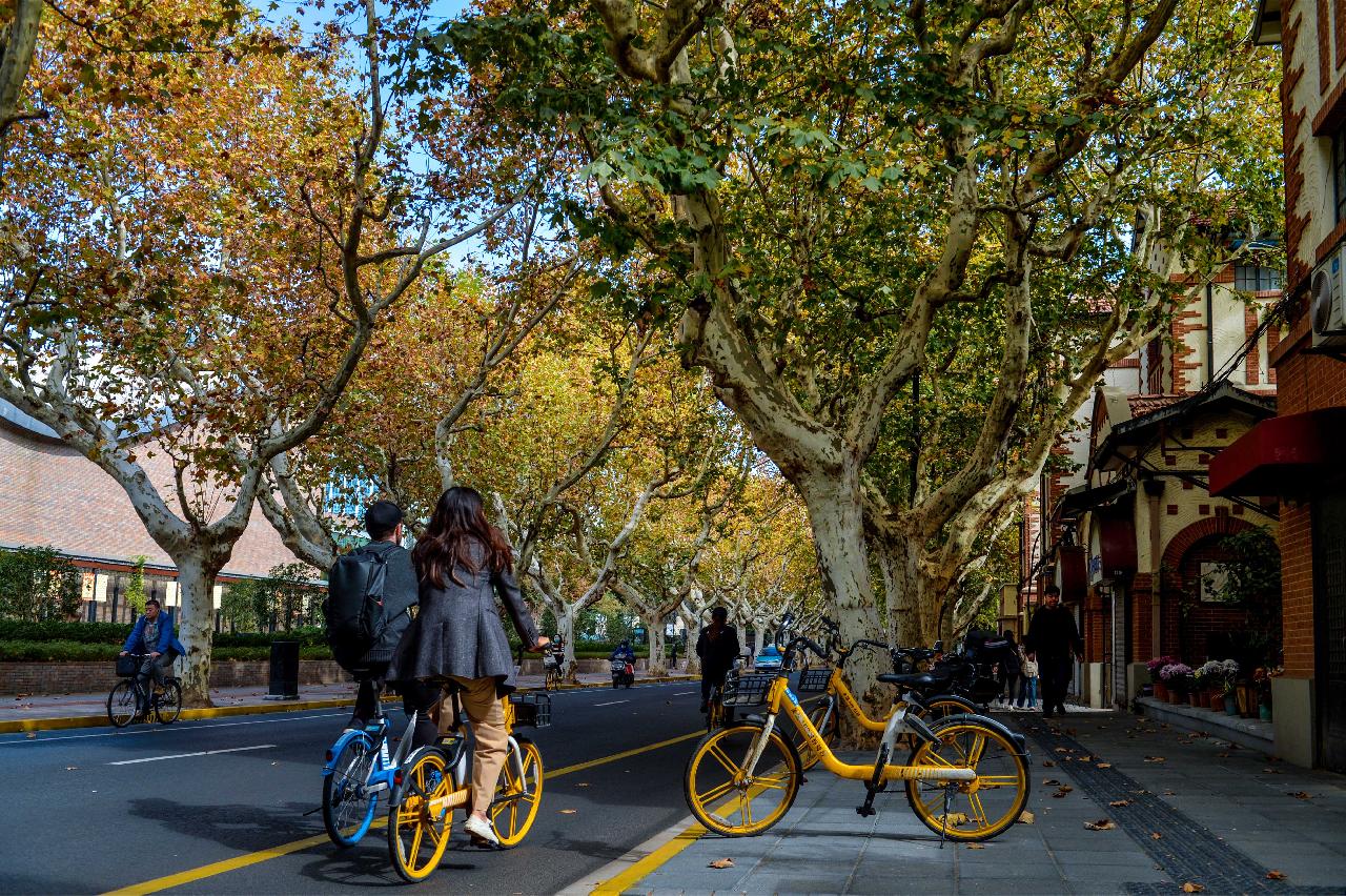 低调内敛的复兴中路、复兴西路,没有网红武康路热闹,但富有浓郁的海上人文气息。初冬时节,路两边的梧桐树开始换上暖色调的“新衣”,斑驳的阳光透过黄绿交织的梧桐叶映衬出别样的景色。