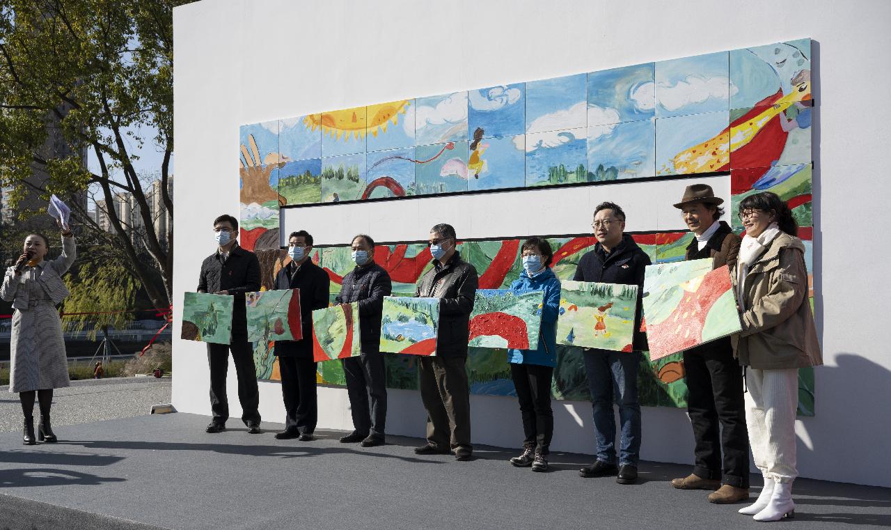 画作“爱的联结”由年轻艺术家黄雨薇完成构想与设计,由百位创作者共同绘制完成。