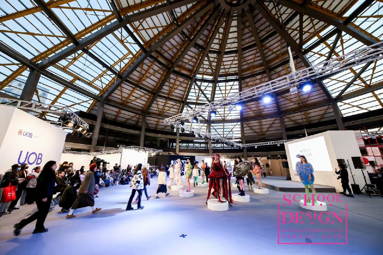 据了解,本次时装秀的作品是华东师范大学设计学院时尚设计专业在教博会现场工作营的成果亮相,工作营以《复古未来》为主题,由著名时尚设计师SENSEN LII和设计学院时尚专业合作,直接将教学现场搬到了教博会展厅,而教学成果就体现在了这场“复古未来”主题秀上,同学们用他们的奇思妙想诠释他们对“复古未来”的无限想象力……