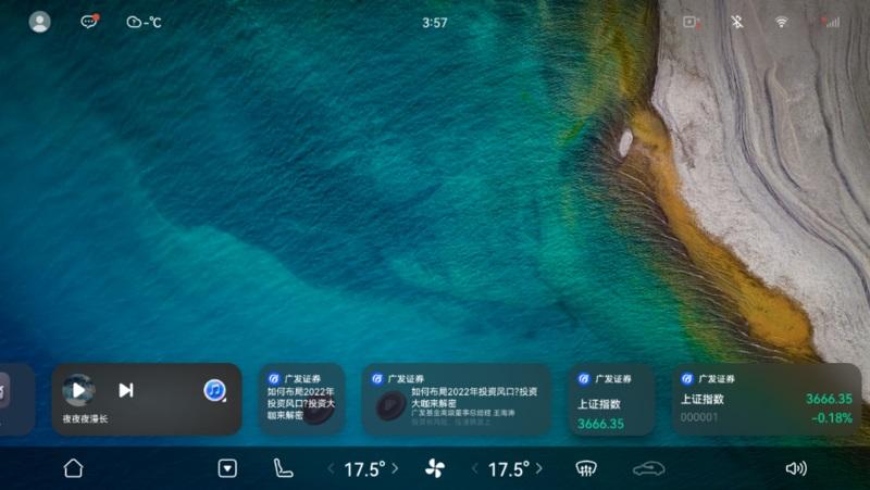 基于华为全新的HarmonyOS智能座舱,广发证券打造了HarmonyOS智能座舱的证券原子化服务,为客户提供在停车时查看A股及港美股实时行情、浏览投资理财课程等功能。