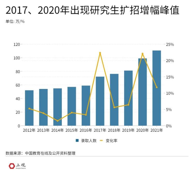 而2021年的研究生计划招生人数为110.7万人,是继2020年以来第二次突破百万。