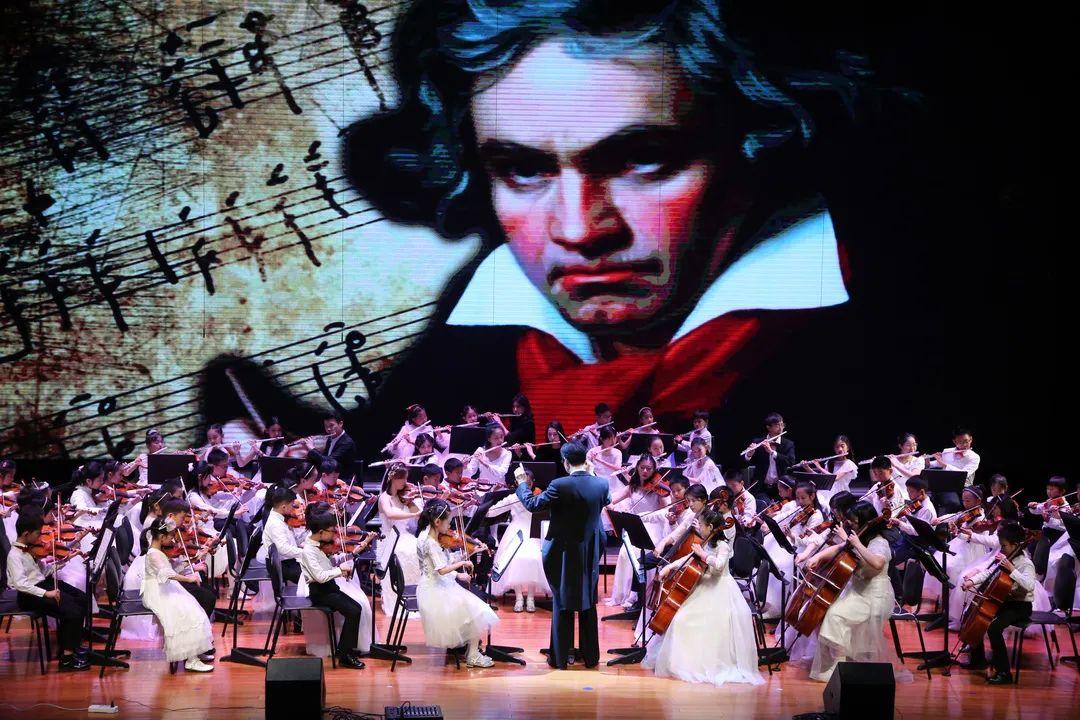 舞台的大幕缓缓拉开,大提琴、小提琴、长笛、小号......交响乐团的学生身着盛装,在华东师范大学音乐系教授常林的指挥下,演奏了一首贝多芬经典乐曲片段Best of Beethoven。乐曲传达了贝多芬为命运而奋起的伟大精神,致敬不平凡的2021年。