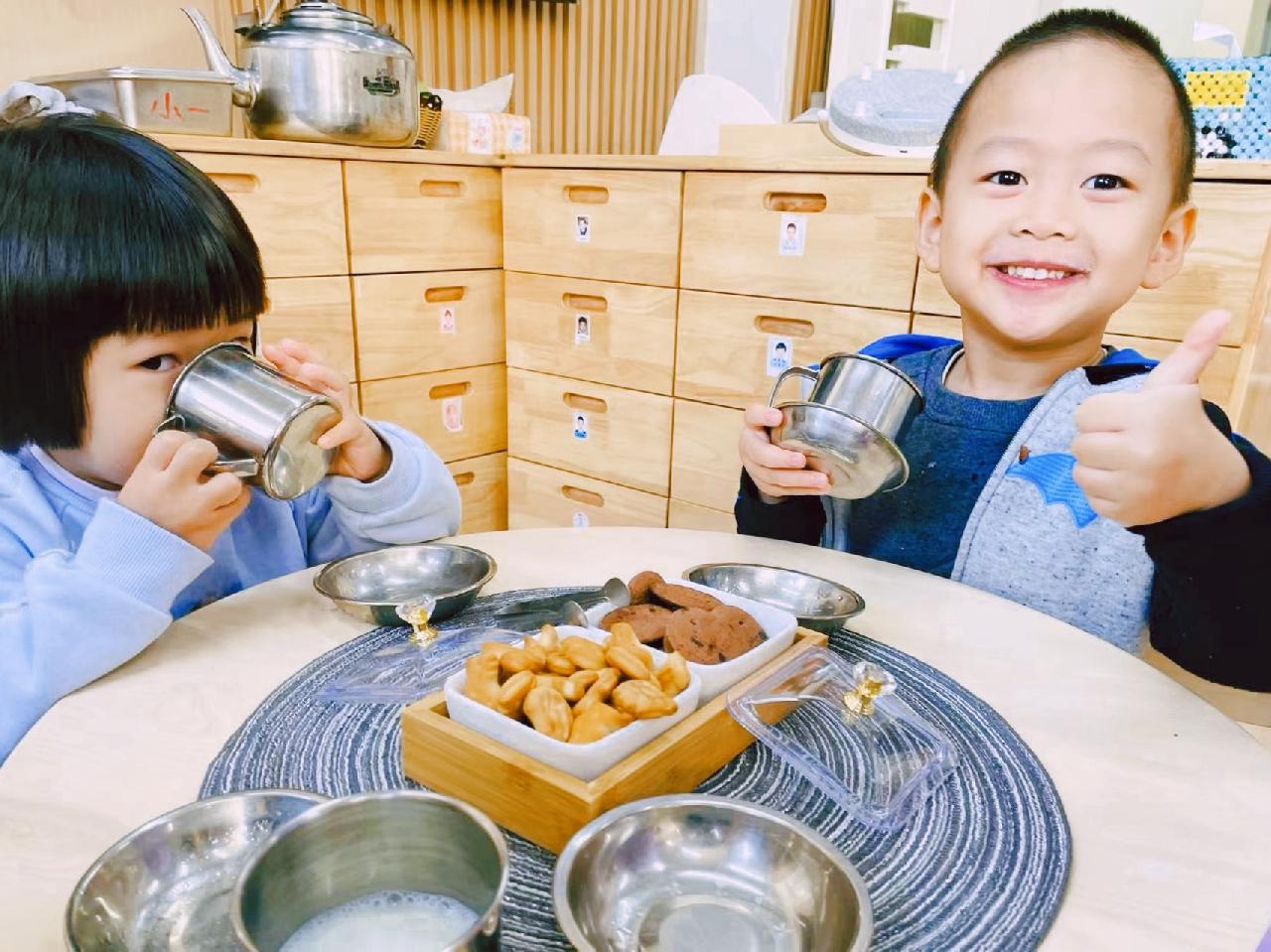 不仅如此,原本喝完奶,保育员还会给孩子分小饼干。