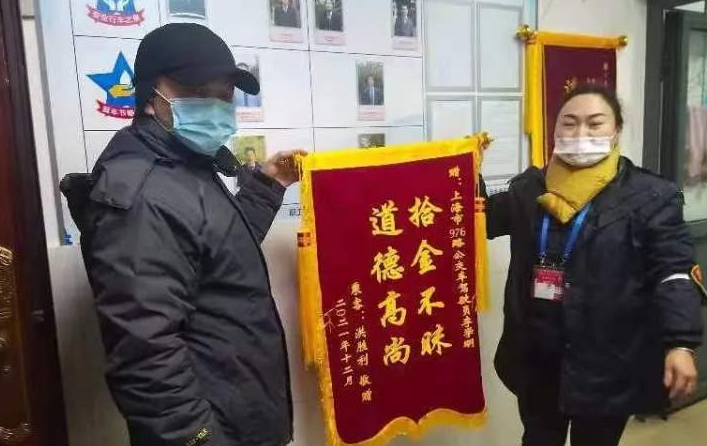 过了两天,失主洪先生特意制作了一面“拾金不昧,道德高尚”的锦旗,亲自送到976路调度室,再次对李师傅暖心善举表示感谢。