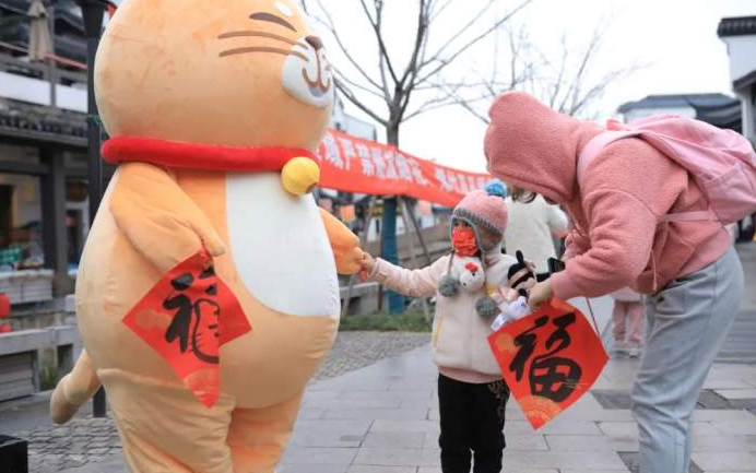 今年本命年的朱女士意外收到了憨憨喵手中的“福”字,令她感到颇有仪式感。“一直是微信上看到平面的憨憨喵,今天没想到‘跑’出来了,画有老虎的‘福’字感觉特别吉利,准备挂在大门上,今年必须福气满满。”