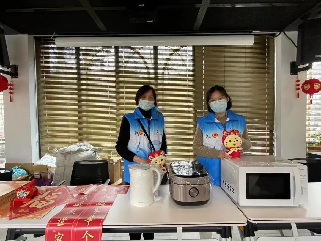 1月22日,徐汇区总工会来到尚街loft园区和天平街道“66梧桐院”,为前来接种的市民送福送健康。