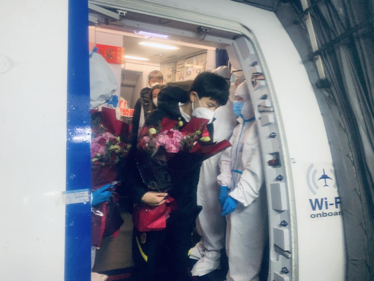 在客舱内、地面工作人员一片热烈的掌声中,中国女足带着胜利的喜悦“回家了”。