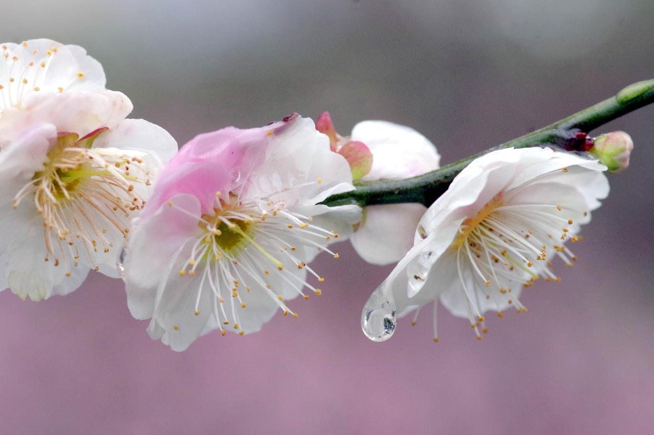 梅花朵朵报春来,进入2月份后梅花傲然盛开,迎来了最佳赏梅期。然而,天气不给力,一直是阴雨绵绵,人们赏花的热情也打折了。其实雨天赏梅却暗合古人对赏梅意境的追求,雨中的梅花更加超凡脱俗。