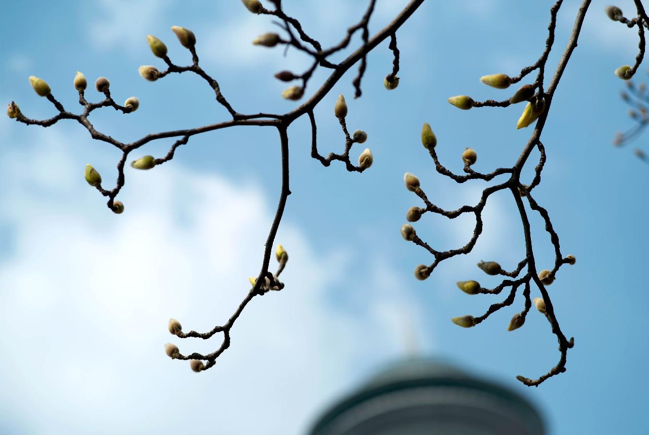 今天申城,微风轻拂、阳光明媚,让人觉得春天脚步近了,西藏中路九江路口种植的白玉兰也终于按耐不住,绽开花苞。