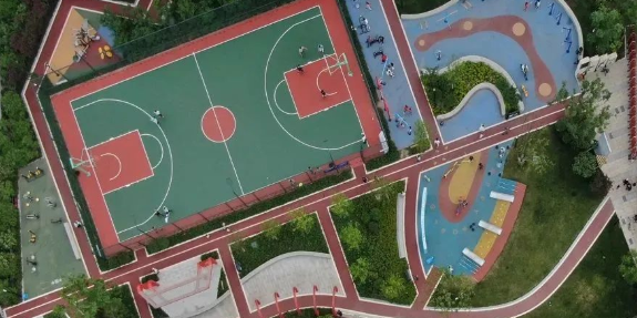 “活力102”是一个融合了体育健身、文化展示、互动体验、休闲娱乐等功能于一体的复合型空间。户外不仅设有各种齐全的户外健身设施、小朋友们喜爱的游艺设施等,还建设有标准化的篮球场和标准化步道。